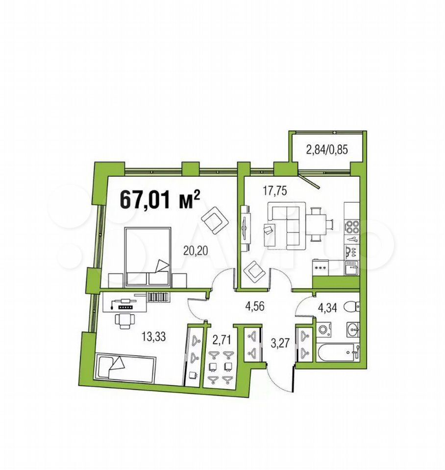 В избранное 2-к. квартира, 67 м², 7/25 эт. на продажу в Перми | Купить квартиру | Авито